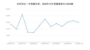 2023年10月,亚洲龙销量为8829辆,同比增长9.15%,环比下降9.16%。2022年10月-2023年10月份,亚洲龙销量为103478辆,同比下降21.31%。