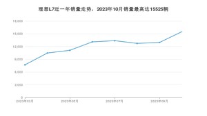 2023年10月,理想L7销量为15525辆,环比增长19.59%。2022年10月-2023年10月份,理想L7销量为97062辆,