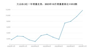 2023年10月,大众ID.3销量为11812辆,同比增长608.58%,环比增长22.4%。2022年10月-2023年10月份,大众ID.3销量为57864辆,同比增长136.47%。