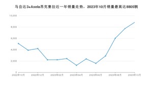 2023年10月,马自达3 Axela昂克赛拉销量为8805辆,同比增长73.5%,环比增长14.25%。2022年10月-2023年10月份,马自达3 Axela昂克赛拉销量为50587辆,同比下降36.69%。