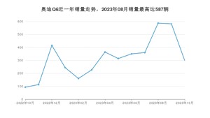 2023年10月,奥迪Q6销量为299辆,同比增长221.51%,环比下降48.63%。2022年10月-2023年10月份,奥迪Q6销量为4108辆,同比增长1%。