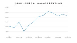 2023年10月,小鹏P7销量为4250辆,同比增长102%,环比下降8.92%。2022年10月-2023年10月份,小鹏P7销量为44990辆,同比下降40.51%。
