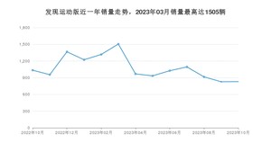 2023年10月,发现运动版销量为830辆,同比下降19.81%,环比增长0.24%。2022年10月-2023年10月份,发现运动版销量为13998辆,同比下降17.38%。