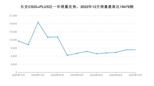 2023年10月,长安CS55 PLUS销量为8374辆,同比下降27.66%,环比增长0.75%。2022年10月-2023年10月份,长安CS55 PLUS销量为125633辆,同比下降29.09%。