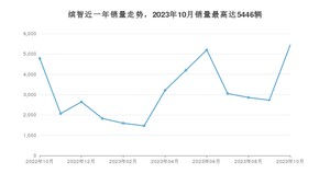 2023年10月,缤智销量为5446辆,同比增长13.98%,环比增长99.71%。2022年10月-2023年10月份,缤智销量为41058辆,同比下降73.18%。
