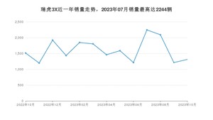 2023年10月,瑞虎3X销量为1311辆,同比下降13.24%,环比增长8.17%。2022年10月-2023年10月份,瑞虎3X销量为20830辆,同比增长50.58%。