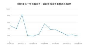2023年10月,K5凯酷销量为182辆,同比下降62.86%,环比下降17.27%。2022年10月-2023年10月份,K5凯酷销量为4541辆,同比下降53.85%。