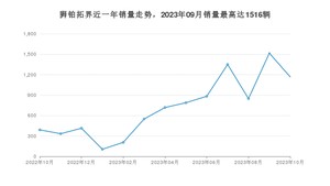 2023年10月,狮铂拓界销量为1167辆,同比增长199.23%,环比下降23.02%。2022年10月-2023年10月份,狮铂拓界销量为9268辆,同比增长2%。