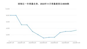 2023年10月,缤瑞销量为3423辆,同比下降57.26%,环比增长11.79%。2022年10月-2023年10月份,缤瑞销量为46787辆,同比下降21%。
