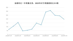 2023年10月,途睿欧销量为195辆,同比增长200%,环比下降19.75%。2022年10月-2023年10月份,途睿欧销量为2060辆,同比增长106%。