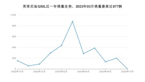 2023年10月,英菲尼迪Q50L销量为1辆,同比下降99.34%,2022年10月-2023年10月份,英菲尼迪Q50L销量为2913辆,同比增长29.52%。