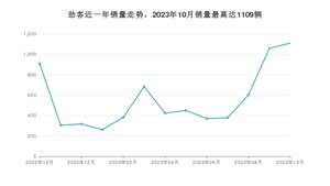 2023年10月,劲客销量为1109辆,同比增长22.27%,环比增长4.82%。2022年10月-2023年10月份,劲客销量为7247辆,同比下降53.61%。