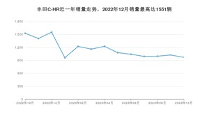 2023年10月,丰田C-HR销量为970辆,同比下降36.44%,环比下降5.27%。2022年10月-2023年10月份,丰田C-HR销量为15149辆,同比下降44.96%。