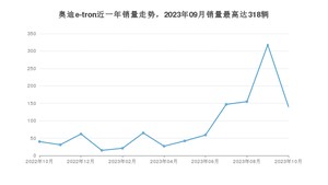 2023年10月,奥迪e-tron销量为140辆,同比增长250%,环比下降55.97%。2022年10月-2023年10月份,奥迪e-tron销量为1122辆,同比下降8.41%。