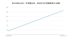 2023年10月,高合HiPhi X销量为160辆,环比增长540%。2022年10月-2023年10月份,高合HiPhi X销量为185辆,