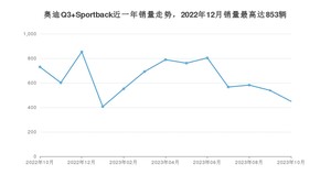 2023年10月,奥迪Q3 Sportback销量为449辆,同比下降38.49%,环比下降16.54%。2022年10月-2023年10月份,奥迪Q3 Sportback销量为8321辆,同比下降27.35%。