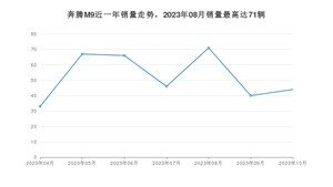 2023年10月,奔腾M9销量为44辆,环比增长10%。2022年10月-2023年10月份,奔腾M9销量为367辆,