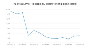 2023年10月,宝骏KiWi EV销量为451辆,同比下降76.94%,环比增长4.88%。2022年10月-2023年10月份,宝骏KiWi EV销量为9941辆,同比下降60.34%。