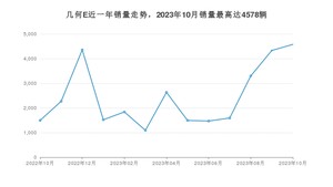 2023年10月,几何E销量为4578辆,同比增长206.02%,环比增长5.68%。2022年10月-2023年10月份,几何E销量为31969辆,同比增长40.66%。