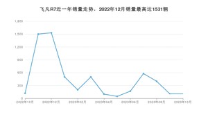 2023年10月,飞凡R7销量为106辆,同比下降10.92%,环比持平。2022年10月-2023年10月份,飞凡R7销量为5859辆,同比增长4%。