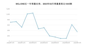 2023年10月,MG ONE销量为342辆,同比下降51.49%,环比下降44.75%。2022年10月-2023年10月份,MG ONE销量为6492辆,同比下降46.16%。
