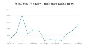 2023年10月,本田e:NS1销量为1378辆,同比增长363.97%,环比增长58.94%。2022年10月-2023年10月份,本田e:NS1销量为8925辆,同比增长266.98%。
