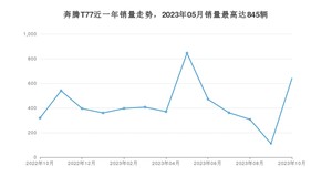 2023年10月,奔腾T77销量为641辆,同比增长101.57%,环比增长482.73%。2022年10月-2023年10月份,奔腾T77销量为5520辆,同比下降54.53%。