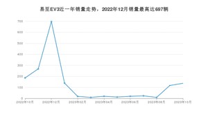 2023年10月,易至EV3销量为137辆,同比下降26.34%,环比增长17.09%。2022年10月-2023年10月份,易至EV3销量为1653辆,同比下降69.51%。