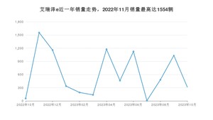 2023年10月,艾瑞泽e销量为313辆,同比增长458.93%,环比下降69.76%。2022年10月-2023年10月份,艾瑞泽e销量为8032辆,同比下降51.73%。