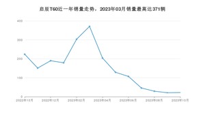 2023年10月,启辰T60销量为22辆,同比下降90.18%,环比增长4.76%。2022年10月-2023年10月份,启辰T60销量为1976辆,同比下降78.07%。