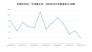 2023年10月,奔腾B70S销量为27辆,同比下降76.52%,环比下降60.87%。2022年10月-2023年10月份,奔腾B70S销量为1206辆,同比下降15.84%。