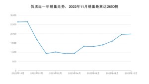 2023年10月,悦虎销量为1985辆,同比下降24.81%,环比增长1.28%。2022年10月-2023年10月份,悦虎销量为20331辆,同比增长57.25%。