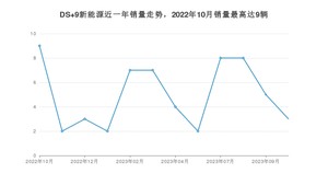 2023年10月,DS 9新能源销量为3辆,同比下降66.67%,环比下降40%。2022年10月-2023年10月份,DS 9新能源销量为60辆,同比下降48.72%。