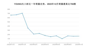 2023年10月,YOUNG光小新销量为161辆,同比下降75.64%,环比增长1.9%。2022年10月-2023年10月份,YOUNG光小新销量为3902辆,同比下降35.56%。