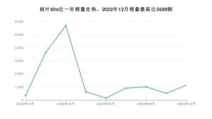 2023年10月,枫叶60s销量为1145辆,同比增长231.88%,环比增长121.04%。2022年10月-2023年10月份,枫叶60s销量为14037辆,同比增长27.48%。
