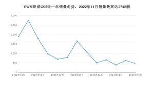 2023年10月,SWM斯威G05销量为465辆,同比下降75.49%,环比下降25.48%。2022年10月-2023年10月份,SWM斯威G05销量为14275辆,同比增长3.8%。