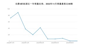2023年10月,名爵6新能源销量为1辆,同比下降98.61%,环比持平。2022年10月-2023年10月份,名爵6新能源销量为286辆,同比下降58.91%。