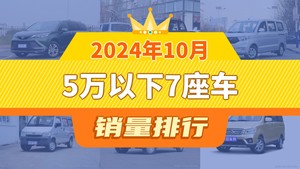 2024年10月5万以下7座车销量排行榜,五菱宏光V屈居第三,五菱之光成最大黑马