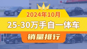 2024年10月25-30万手自一体车销量排行榜,亚洲龙屈居第三,哈弗H9成最大黑马