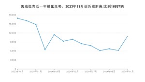 在国内市场上,凯迪拉克,在2024年11月的销量为10908辆,同比下降35.41%,环比增长77.19%。2023年11月-2024年11月份,凯迪拉克累计销量为130843辆,较去年同期下降33.99%。
