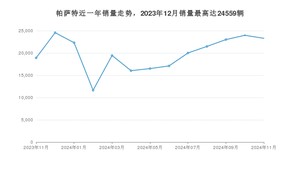 2024年11月,帕萨特销量为23300辆,同比增长23.22%,环比下降2.81%。2023年11月-2024年11月份,帕萨特销量为258268辆,同比增长28.44%。