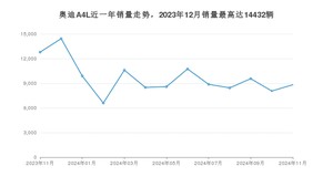 2024年11月,奥迪A4L销量为8823辆,同比下降31.04%,环比增长9.45%。2023年11月-2024年11月份,奥迪A4L销量为125907辆,同比下降10.94%。