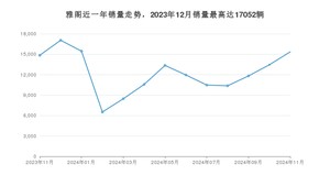 2024年11月,雅阁销量为15354辆,同比增长3.4%,环比增长14.14%。2023年11月-2024年11月份,雅阁销量为159705辆,同比下降17.65%。