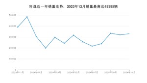 2024年11月,轩逸销量为32977辆,同比下降15.67%,环比增长3.24%。2023年11月-2024年11月份,轩逸销量为392613辆,同比增长2.82%。