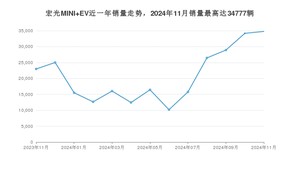 2024年11月,宏光MINI EV销量为34777辆,同比增长51.3%,环比增长1.73%。2023年11月-2024年11月份,宏光MINI EV销量为271394辆,同比下降2.85%。