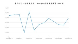 2024年11月,卡罗拉销量为11825辆,同比下降11.38%,环比增长59.86%。2023年11月-2024年11月份,卡罗拉销量为128186辆,同比下降41.5%。
