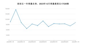 2024年11月,逍客销量为10207辆,同比下降3.32%,环比增长24.22%。2023年11月-2024年11月份,逍客销量为128244辆,同比增长12.12%。