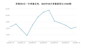 2024年11月,极氪001销量为6603辆,同比下降2.19%,环比增长12.49%。2023年11月-2024年11月份,极氪001销量为107020辆,同比增长18.11%。