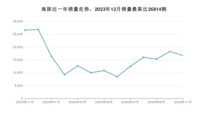 2024年11月,海豚销量为16680辆,同比下降37.25%,环比下降8.51%。2023年11月-2024年11月份,海豚销量为199549辆,同比下降38.59%。