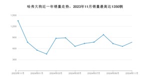2024年11月,哈弗大狗销量为770辆,同比下降42.96%,环比增长17.2%。2023年11月-2024年11月份,哈弗大狗销量为10190辆,同比下降87.09%。